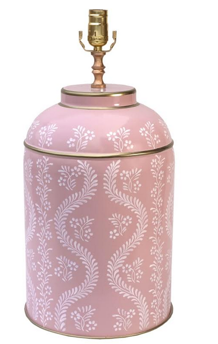 Pink & White IKat Trellis Tea Caddy Lamp